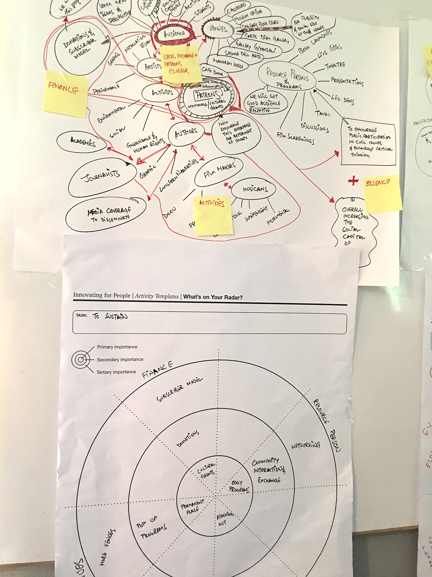 The last activity ‘What’s on your Radar’ combined strategic decision making with the need to prioritize. While the stakeholder map laid bare the structure and the processes in the business system, this stage enabled focused action. Choices could be made regarding what to start with immediately and what to keep for later. Decision making is hard but the radar-like structure of the chart, made it easy for participants to rank options and to pinpoint tasks.