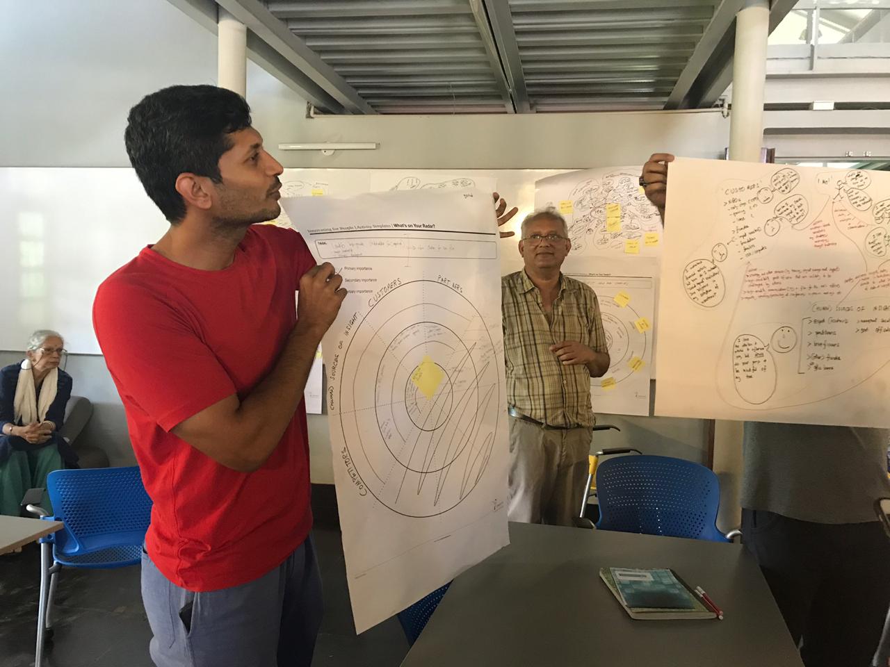 The participants were all self-assured, open-minded and willing to listen to others, qualities essential for entrepreneurs. Govind Mukundan, who is setting up a Research and Communications Consultancy for businesses, non-profits and start ups realised ‘The need to test/ validate specific service ideas, exactly WHAT and for WHO’. Mandar Nagarsekar from Power of Dreams (POD), a business incubator in Panjim felt that the workshop process taught him its important ‘to focus and prioritize!’ ‘Storyboarding is critical to success’ ,learnt Tina Gupta of Thinkering Learning Space. ‘I learned how to make people the main focus of my business’, said Clifford who is launching a Probarbell strength coaching programme.