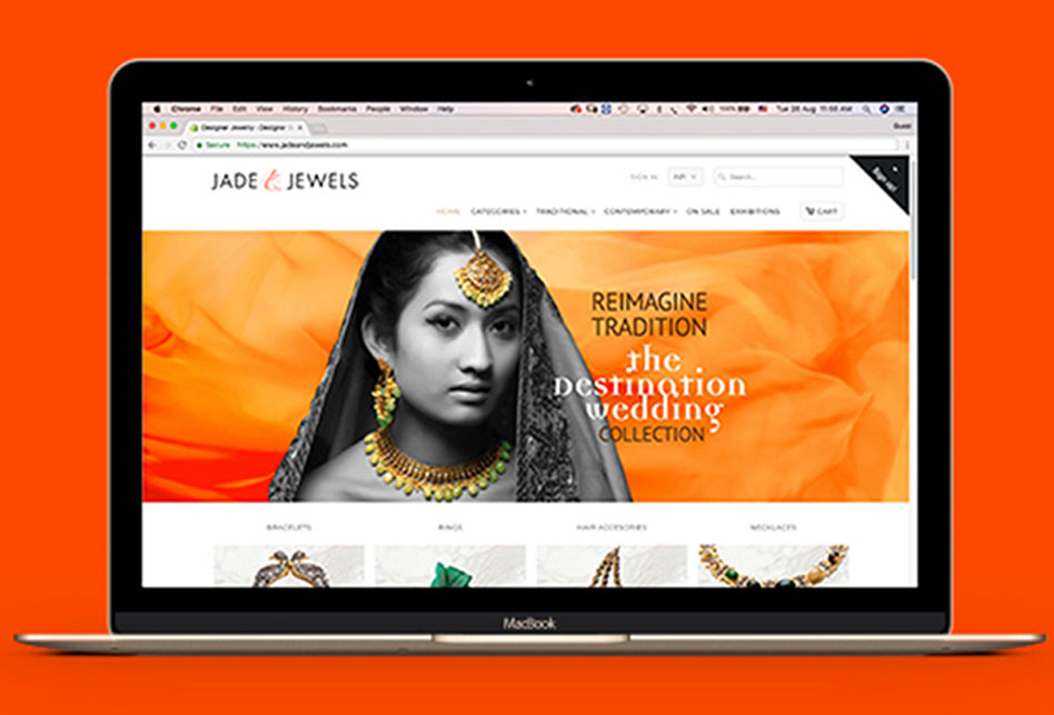 In 2015, Amplify set up an online store for Jade and Jewels (J & J) on the Shopify platform. The entrepreneur behind J&J, Annu Lulla, was an early adopter of e-commerce. The chic, semi-precious stone jewellery she designed for J & J targeted the contemporary, globe- trotting Indian woman, comfortable in both sarees and trousers. J&J’s customer persona mirrored Annu’s own sophisticated style sensibilities. Based on these cues, the Amplify designed a sleek and minimalist look for J &J with social media content to match.